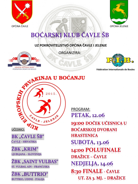 la coupe d'Europe des Clubs Féminins aura lieu à ČAVLE en Croatie du 12 au 14 juin 2015