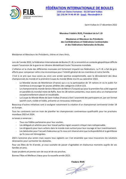 Les vœux du président de la FIB