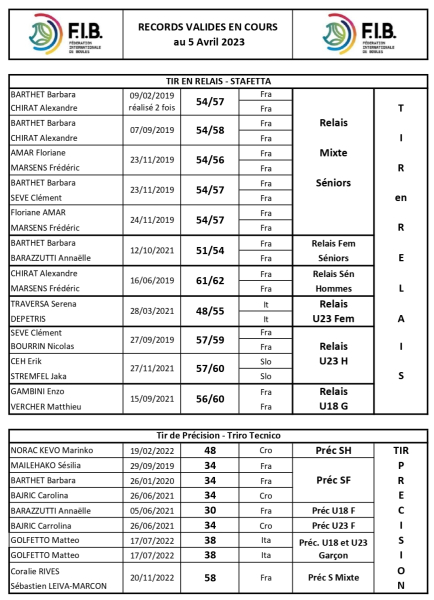 Derniére mise à jours des records