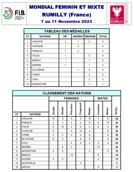 Mondial 2023 Féminin et Mixte de RUMILLY (France)